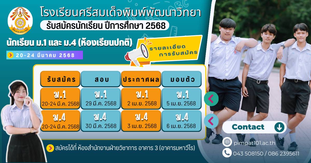 ประกาศการรับนักเรียนชั้นมัธยมศึกษาปีที่ 1 และชั้นมัธยมศึกษาปีที่ 4 ประจำปีการศึกษา 2568 ประเภทห้องเรียนปกติ -
