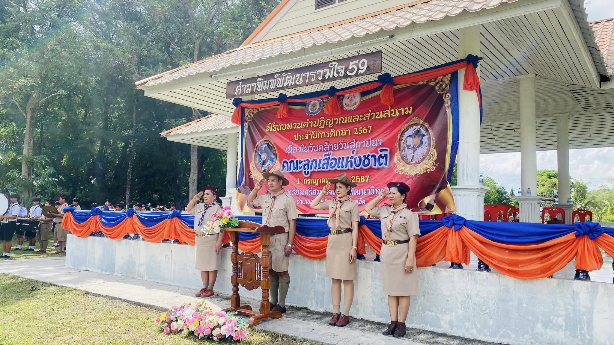 พิธีทบทวนคำปฏิญาณและสวนสนาม เนื่องในวันคล้ายวันสถาปนาคณะลูกเสือแห่งชาติ 1 กรกฎาคม 2567 โรงเรียนศรีสมเด็จพิมพ์พัฒนาวิทยา